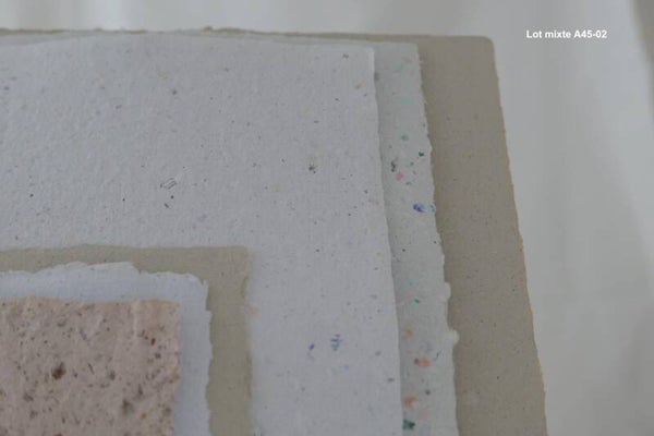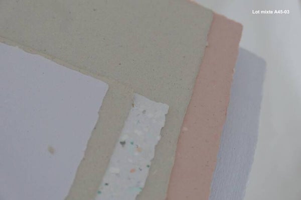- Les lots sont fonction du stock : les feuilles peuvent être plus ou moins lisses, épaisses, fines, colorées, texturées, avec ou sans inclusion, différentes ou identiques.