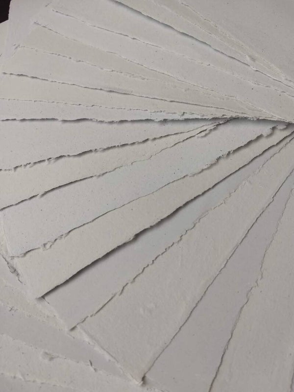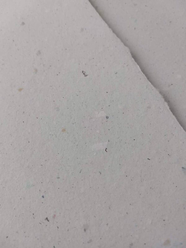 Papier fait à la main, feuille à feuille, à partir de vieux papiers.